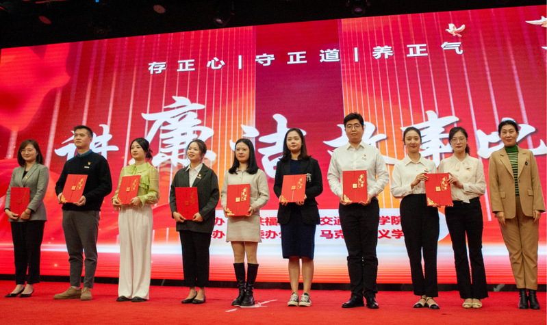為深入推進“清廉學校”建設,營造崇尚廉潔、風清氣正的校園文化氛圍,近日,由學院紀委主辦,馬克思主義學院承辦的“存正心、守正道、養(yǎng)正氣”講廉潔故事比賽在藝新樓331舉行,學院黨委委員、紀委書記張輝出席并為獲獎選手頒獎,機關黨總支部分入黨積極分子、各二級學院師生代表、紀委辦全體干部共200余人到場觀看。
