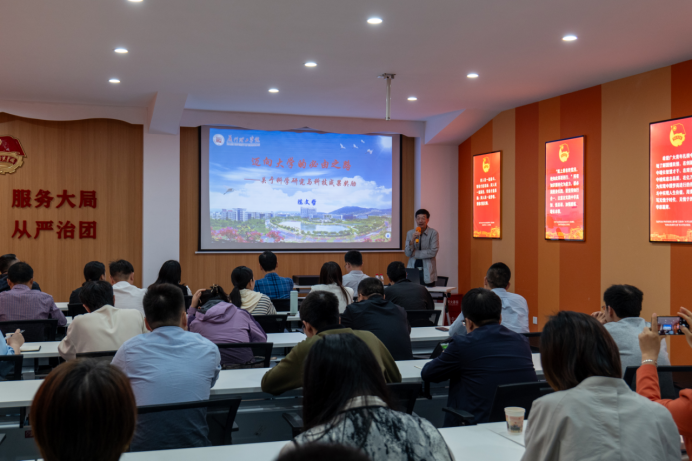 陳文哲教授首先做題為“邁向大學(xué)的必由之路——關(guān)于科學(xué)研究與科技成果獎(jiǎng)勵(lì)”的報(bào)告,從青年教師成長(zhǎng)、產(chǎn)學(xué)研合作、科技成果積累與報(bào)獎(jiǎng)、科研與教學(xué)之間的關(guān)系等方面做了精彩分享,并勉勵(lì)青年教師勇于投身產(chǎn)學(xué)研實(shí)踐,組建校企科技攻關(guān)團(tuán)隊(duì),在科研實(shí)踐中不斷成長(zhǎng)。