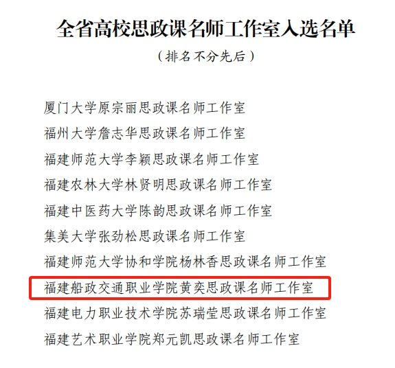 近日,福建省教育廳公布了全省高校思政課名師工作室入選名單的通知,我院馬克思主義學(xué)院黃奕思政課名師工作室成功入選。