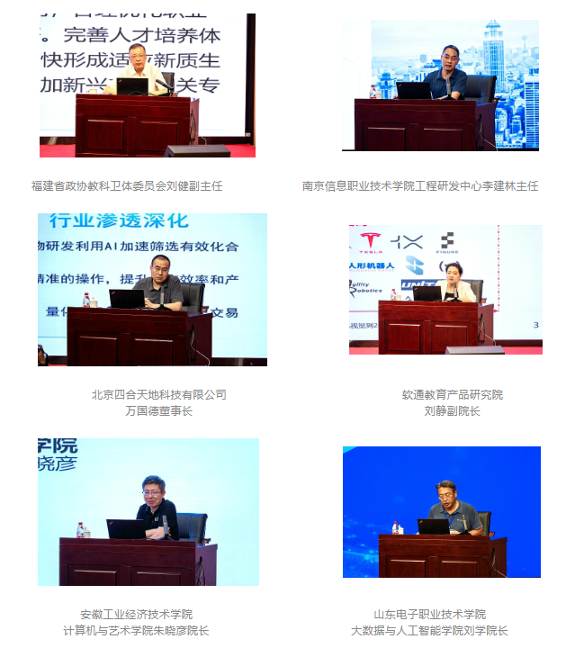 在交流環(huán)節(jié),大會特邀謝俐司長、劉健副主任、北京四合天地科技有限公司萬國德董事長、軟通教育產(chǎn)品研究院劉靜副院長、山東電子職業(yè)技術(shù)學(xué)院大數(shù)據(jù)與人工智能學(xué)院劉學(xué)院長、安徽工業(yè)經(jīng)濟(jì)技術(shù)學(xué)院計算機(jī)與藝術(shù)學(xué)院朱曉彥院長、南京信息職業(yè)技術(shù)學(xué)院工程研發(fā)中心李建林主任等七位專家作主旨報告,內(nèi)容立足前沿、聚焦實(shí)踐,以深刻的理論洞察與豐富的案例剖析,為人工智能領(lǐng)域職業(yè)教育在新時代的創(chuàng)新發(fā)展指明了方向。
