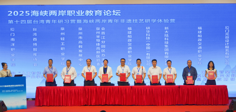 7月15日-17日,2025海峽兩岸職業(yè)教育論壇在福建省福州市成功舉行。此次論壇以“AI賦能職業(yè)教育”為主題,由中華職業(yè)教育社、福建省中華職業(yè)教育社聯(lián)合臺灣多家社會團體共同主辦,福建船政交通職業(yè)學院承辦,《教育與職業(yè)》雜志社協(xié)辦。論壇涵蓋開幕式、揭牌儀式、項目簽約、學術報告、嘉賓對話、文化活動、現(xiàn)場教學等多項議程,來自兩岸的職業(yè)教育專家、學者、院校和企業(yè)代表等230余人出席活動。