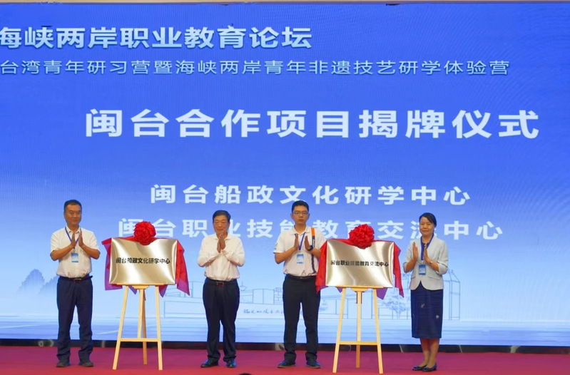 揭牌儀式上,我院“閩臺船政文化研學中心”“閩臺職業(yè)技能教育交流中心”成功揭牌。據(jù)悉,研學中心將整合校內(nèi)外場館資源,推動閩臺青少年研學實踐常態(tài)化,通過文化浸潤、技藝實訓與歷史探尋,為深化兩岸融合發(fā)展、賡續(xù)中華文脈注入青春動能。交流中心將聯(lián)合閩臺高校及行業(yè)企業(yè),深化閩臺高校“校校企”聯(lián)合培養(yǎng)項目,推動師資互聘、課程共建、科研合作、技能認證互通及銜接培養(yǎng),為閩臺產(chǎn)業(yè)融合發(fā)展提供高技能人才支撐。