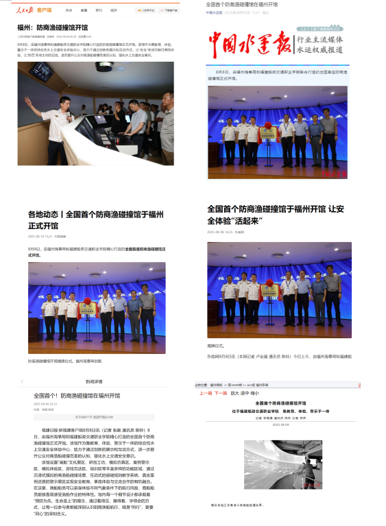 8月8日,由福州海事局和福建船政交通職業(yè)學(xué)院精心打造的全國首座防商漁碰撞館在福船園正式開館,獲得人民日報、中國水運報、東南網(wǎng)、新福建、福州晚報等主流媒體報道。本次活動主要情況報道如下: