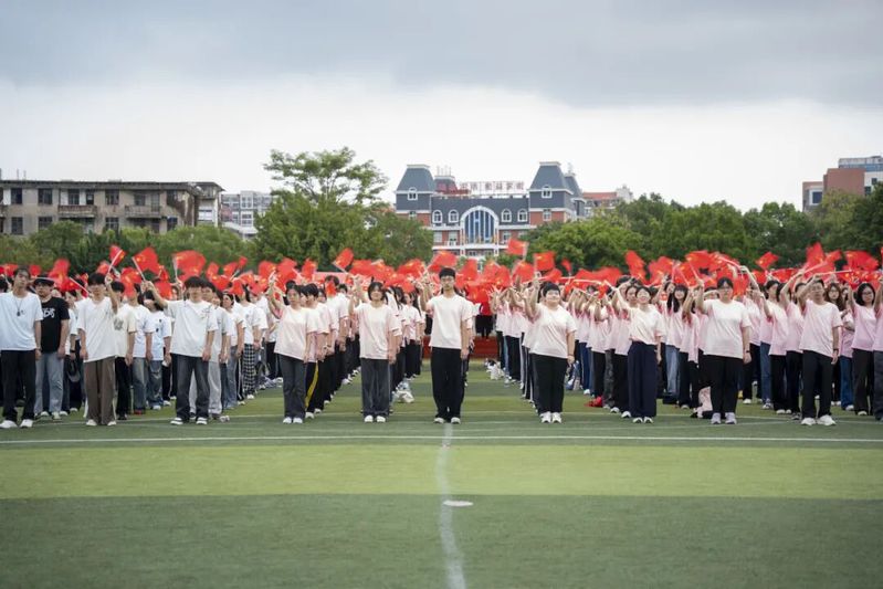 國歌余韻尚在校園回蕩,師生們已高舉國旗,將滿腔熱忱化作鏗鏘吶喊:“青春為中國式現(xiàn)代化挺膺擔當,強國復興有我!強國復興有我!強國復興有我!” 嘹亮的口號,既是對祖國的深情告白,更將復興征程上的青春誓言,牢牢鐫刻在晨光里、心底間。