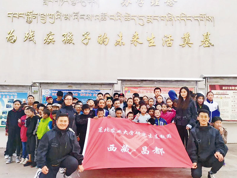 習(xí)近平總書記強(qiáng)調(diào),同人民一道拼搏、同祖國一道前進(jìn),服務(wù)人民、奉獻(xiàn)祖國,是當(dāng)代中國青年的正確方向。他勉勵青年人到基層和人民中去建功立業(yè),讓青春之花綻放在祖國最需要的地方,在實現(xiàn)中國夢的偉大實踐中書寫別樣精彩的人生。圖為2020年8月10日,東北農(nóng)業(yè)大學(xué)支教團(tuán)在西藏昌都市支教期間與學(xué)校師生合影。(新華社記者 楊思琪/攝)