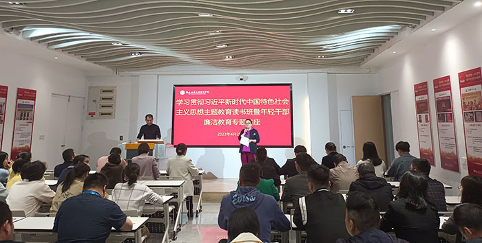 為深入貫徹落實黨中央關于加強新時代廉潔文化建設要求和省委教育工委關于廉潔學校建設的部署要求,推動我校學習貫徹習近平新時代中國特色社會主義思想主題教育走深走實,增強廣大年輕干部廉潔意識、風險意識和責任意識。4月25日下午,我校邀請廈門海洋職業(yè)技術學院黨委副書記繆雄平為年輕干部作《扣好廉潔從政“第一粒扣子”》專題講座。學校80后副科級以上年輕干部、各黨總支紀檢委員、紀委辦公室全體干部、校團委兩委委員近80余人到場聆聽講座。