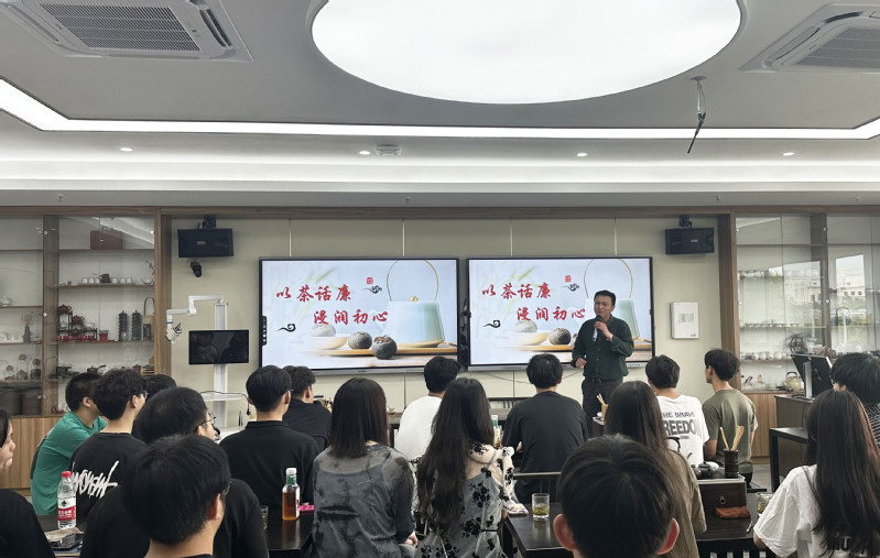 隨后,連江縣委黨校百人講師團(tuán)成員陳鋒老師作為分享會(huì)特邀嘉賓,為大家作題為“以茶養(yǎng)廉,匯聚清廉正能量”茶廉文化課。他以“茶八德”為引,從中國茶道、中國茶德精神要義及以“茶”養(yǎng)廉的傳統(tǒng)文化等方面娓娓道來,深刻講解了“康、樂、甘、香、和、清、敬、美”的茶文化,讓師生全面了解“茶”有“廉”之神、“廉”有“茶”之韻,使大家深刻明白“干凈是一杯好茶的底色,清廉是為人必備的品格”的道理。