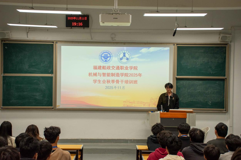 為深入學(xué)習(xí)貫徹黨的二十屆四中全會(huì)精神,落實(shí)習(xí)近平總書記關(guān)于教育、科技、人才工作的重要指示批示精神,筑牢學(xué)生骨干政治根基、提升綜合能力,2025年11月11日,福建船政交通職業(yè)學(xué)院機(jī)械與智能制造學(xué)院在福道園八號(hào)樓第一階梯教室啟動(dòng)秋季學(xué)生骨干培訓(xùn)班第一講。學(xué)院團(tuán)委、學(xué)生會(huì)成員及各班級(jí)團(tuán)支部學(xué)生骨干代表齊聚一堂,共學(xué)精神、共話使命。
