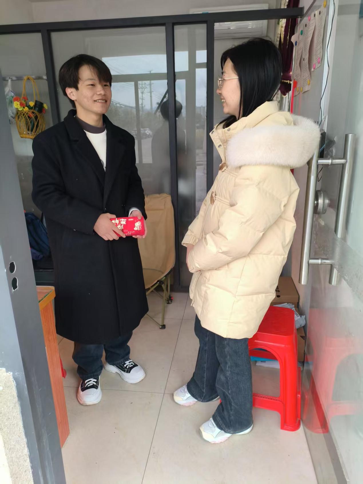 學校特意準備了紅包,由輔導員親手送到學生及家人手中。這不僅僅是一份物質上的幫助,更是學校對學生家庭困境的深切理解與支持。