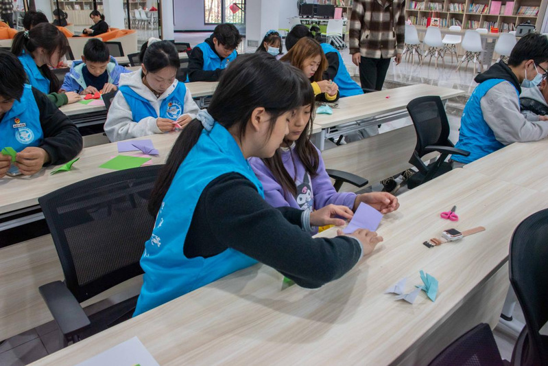 在志愿者的悉心指導(dǎo)與小朋友們的不懈努力下,一張張普通的彩紙經(jīng)過折疊、翻折、剪裁,逐漸變成了一只只色彩斑斕、形態(tài)各異的蝴蝶。有的蝴蝶展翅欲飛,有的蝴蝶點(diǎn)綴著創(chuàng)意花紋,每一件作品都充滿了童真與巧思??粗约河H手完成的作品,小朋友們臉上洋溢著滿滿的自豪與喜悅,活動現(xiàn)場仿佛化作一片五彩斑斕的“蝴蝶谷”,歡聲笑語不斷。