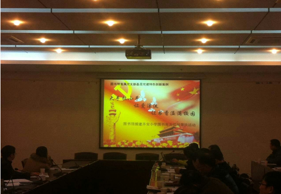1月9日學(xué)院開展了基層黨建特色創(chuàng)新案例展示評比活動。我館選送的案例《大手拉小手 讓愛漂流 讓書香溢滿?!獔D書館援建齊安小學(xué)圖書角及黨員結(jié)對幫扶活動》在此次比賽中榮獲二等獎的好成績。