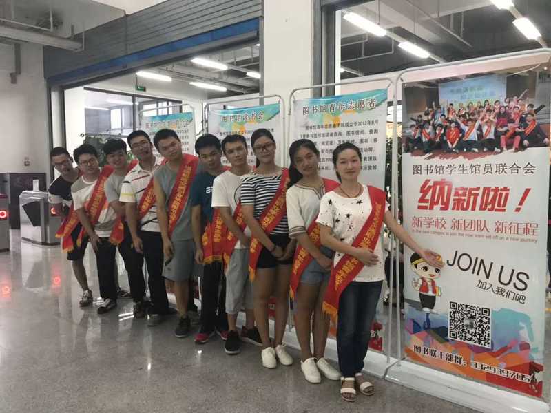 此次擔(dān)任新生入館參觀的青年志愿者們,均是圖書館學(xué)生館員聯(lián)合會的成員。他們帶領(lǐng)新生參觀了學(xué)校校史館,并熱情地向新讀者介紹了學(xué)院圖書館的概況,包括藏書量、電子資源、館室分布等。他們細致地講解了借閱圖書的流程,各庫室的使用規(guī)則、注意事項等。同時現(xiàn)場設(shè)立圖書館學(xué)生館員聯(lián)合會納新宣傳報名點,吸引一千多名新生報名參與圖書館學(xué)生館員納新面試。