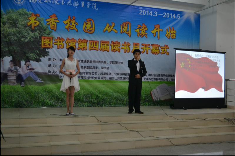 開幕式上,學(xué)院黨委書記江定濤做了精彩致辭,充分肯定了本次活動(dòng)的重要意義?;顒?dòng)還評(píng)選出圖書館青年志愿者“愛心大使”、青年志愿者Q版卡通形象獲獎(jiǎng)作品以及“讀經(jīng)典學(xué)榜樣”詩歌朗誦比賽獲獎(jiǎng)?wù)?,獲獎(jiǎng)選手受到了學(xué)院的表彰,并在現(xiàn)場(chǎng)進(jìn)行了精彩的展演。