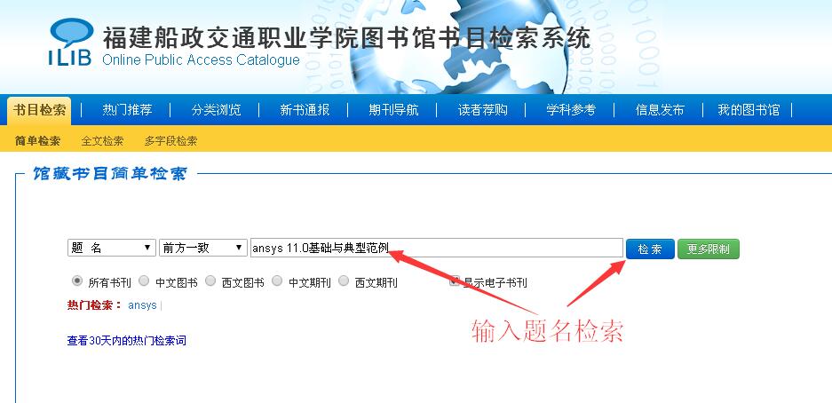 1.進(jìn)入館藏書目查詢: