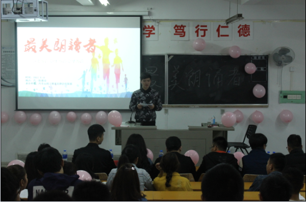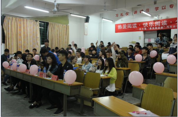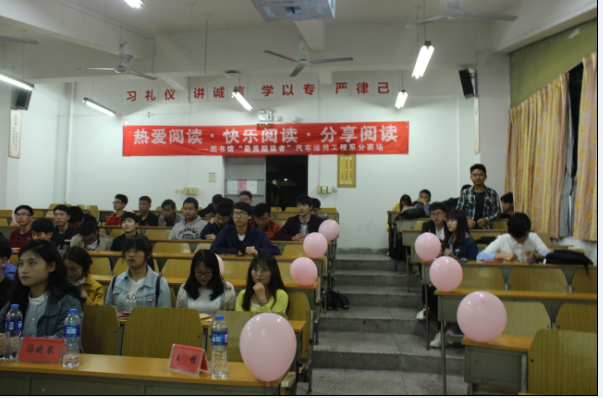 活動在各班級如火如荼的開展,旨在讓全系同學(xué)分享了自己在閱讀中的種種收獲,為同學(xué)們營造出溫馨的讀書氛圍,感受讀書的愜意。各班同學(xué)們還紛紛在“享讀書之樂,浴書香之馨”的現(xiàn)場橫幅上簽下自己的名字,倡議大家“好讀書 勤讀書 薦好書”。經(jīng)過各支部推薦選拔,4月11日在北區(qū)22號樓汽一階教室舉辦此次活動的決賽,活動特邀圖書館學(xué)生館員聯(lián)合會代表和我系學(xué)生會主席團(tuán)與各部門長參與評選,同學(xué)不僅紛紛踴躍推薦自己心目中的好書,還讓同學(xué)們分享了自己在閱讀中的心得與體會,展示了禮儀、汽車營銷等閱讀、學(xué)習(xí)成果。