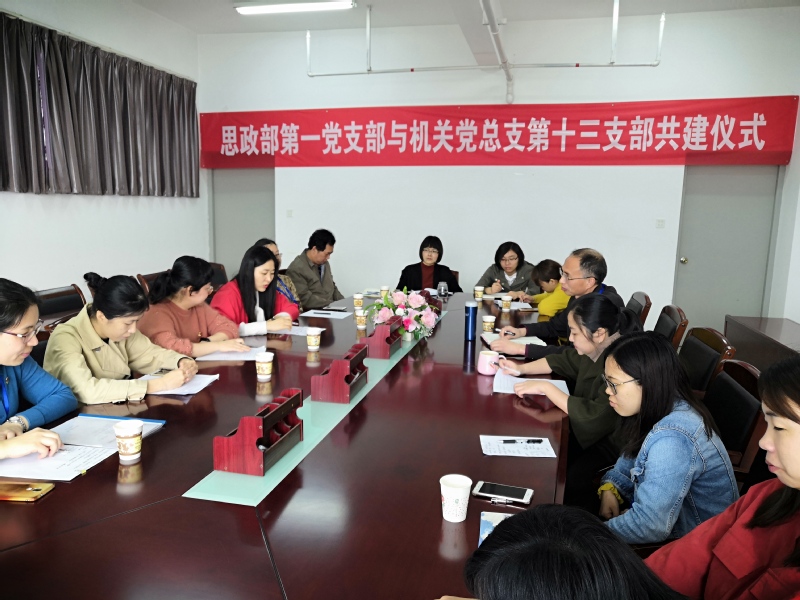 為深入貫徹落實黨的十九大精神和習近平新時代中國特色社會主義思想,著力提升基層黨建工作水平,落實學院黨委對基層黨建的有關部署,進一步推進、鞏固和擴大“兩學一做”學習教育常態(tài)化成果,努力形成“抓黨建、帶隊伍、促發(fā)展”的整體合力,3月28日上午9點,機關第十三黨支部與思政部第一黨支部在圖書館9樓會議室隆重舉行結對共建儀式。圖書館館長、機關第十三黨支部支部書記陳家越,思政部主任、黨總支書記趙黎,思政部副主任林佳梅,以及兩個支部全體成員參加了黨建結對共建座談會,會議由機關第十三黨支部張帆老師主持,雙方就黨建結對共建開展深入交流討論。
