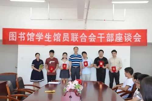 陳家越館長在會上表示,感謝圖學聯(lián)干部幾年來對圖書館工作的無私奉獻和大力支持,希望圖學聯(lián)的同學們在圖書館工作期間多為廣大師生服務,構(gòu)建好館讀溝通的橋梁,即將畢業(yè)的同學們要多回母??纯?,為母校做貢獻。