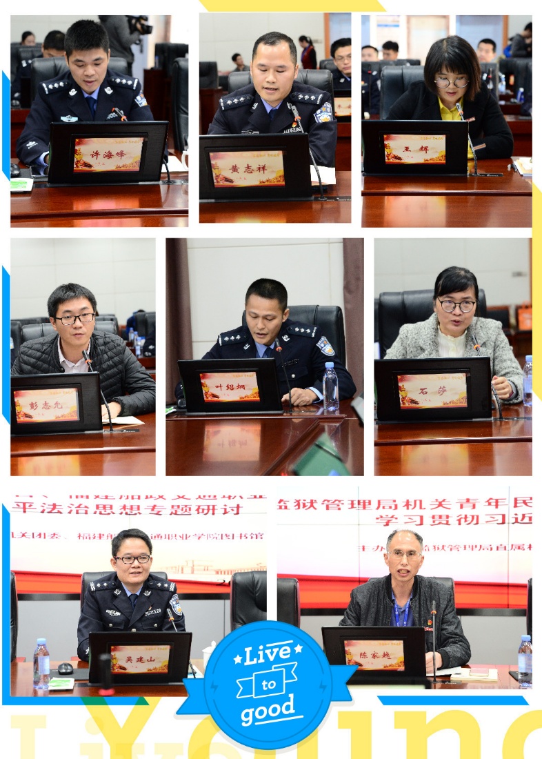 參觀結(jié)束后,省監(jiān)獄管理局機關(guān)青年民警與我院青年教師代表在學院六樓會議室開展了學習貫徹習近平法治思想專題研討。兩個單位優(yōu)秀青年代表緊緊圍繞習近平新時代中國特色社會主義思想,習近平法治思想內(nèi)容進行交流,干警們具有豐富的執(zhí)法實踐經(jīng)驗,我校教師具有較強的理論研究基礎(chǔ),通過研討將持續(xù)推動認真學習貫徹落實黨的十九屆五中全會精神和中央全面依法治國工作會議精神,堅持以習近平法治思想武裝頭腦、指導實踐、推動工作,為我?!半p高“建設(shè)提供有利的憲法保障。