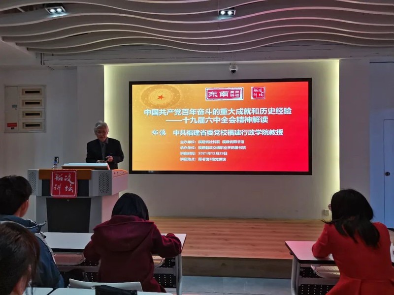 12月29日下午,由福建省社科聯(lián)和福建省圖書館主辦的東南周末講壇走進福建船政交通職業(yè)學(xué)院圖書館,攜手船政講壇開展《中國共產(chǎn)黨百年奮斗的重大成就和歷史經(jīng)驗——十九屆六中全會精神解讀》專題講座。福建船政交通職業(yè)學(xué)院圖書館全體館員及圖學(xué)聯(lián)團隊學(xué)生110人到場參加。