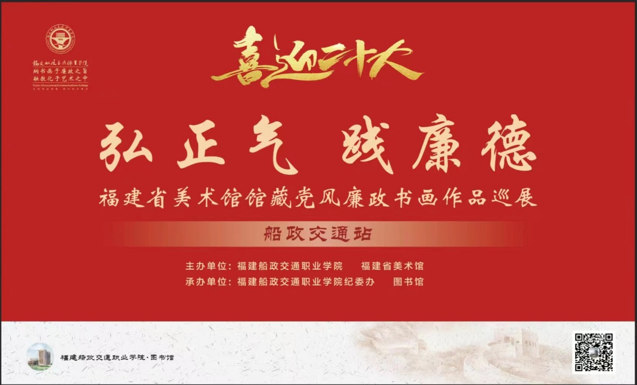 為深入貫徹落實《中共中央辦公廳關(guān)于加強(qiáng)新時代廉潔文化建設(shè)的意見》精神,推進(jìn)廉潔文化建設(shè)走深走實,進(jìn)一步加強(qiáng)圖書館全員崇尚廉潔、鄙棄貪腐的思想理念,弘揚(yáng)清正廉潔的良好風(fēng)氣,號召全體館員以實際行動喜迎黨的二十大勝利召開,圖書館黨支部于10月13日上午組織黨員領(lǐng)導(dǎo)干部和教職工參觀福建省美術(shù)館和福建船政交通職業(yè)學(xué)院在學(xué)院北區(qū)鑒知樓(圖書館)一樓隆重舉辦的“喜迎二十大 弘正氣踐廉德”黨風(fēng)廉政書畫作品巡展活動。
