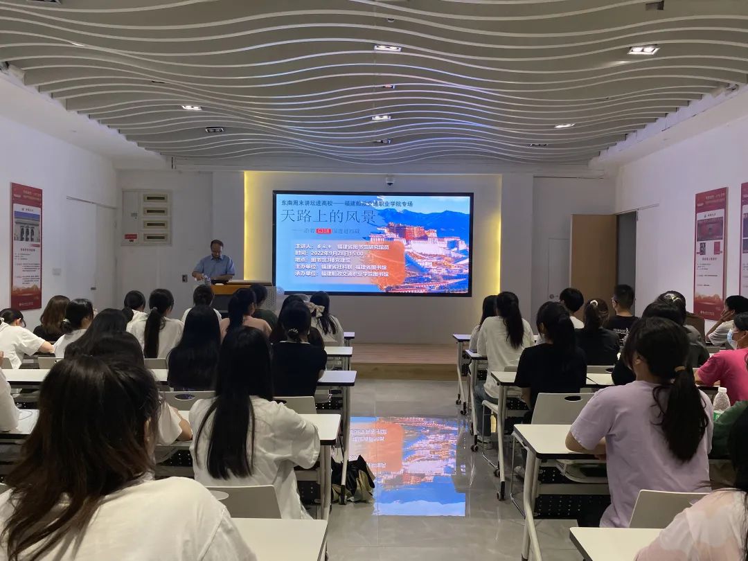龔永年教授詳細(xì)介紹前往西藏的主要線路以及應(yīng)注意的事項(xiàng),并通過200多幅照片向聽眾展示318國(guó)道川藏線上的壯美與艱險(xiǎn),帶領(lǐng)同學(xué)們領(lǐng)略雪域高原等西藏的絕美風(fēng)光。