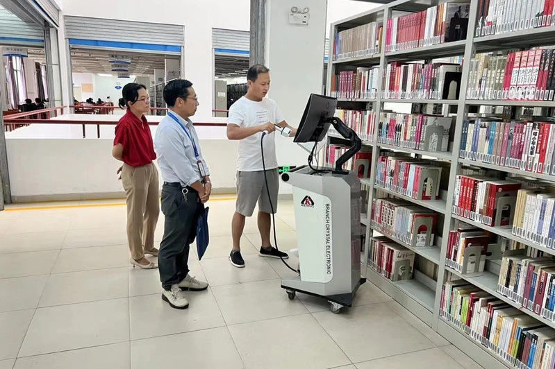 隨后,張副院長對智慧圖書館平臺建設的試用效果進行了深入調(diào)研。陳林館長匯報了智慧圖書館建設的進展情況和應用效果,工作人員現(xiàn)場演示了激光條碼系統(tǒng)快速借還圖書、智能盤點等操作,張副院長對圖書館整體工作、智慧圖書館平臺建設進展給予了充分的肯定,并提出具體的指導意見及建議。