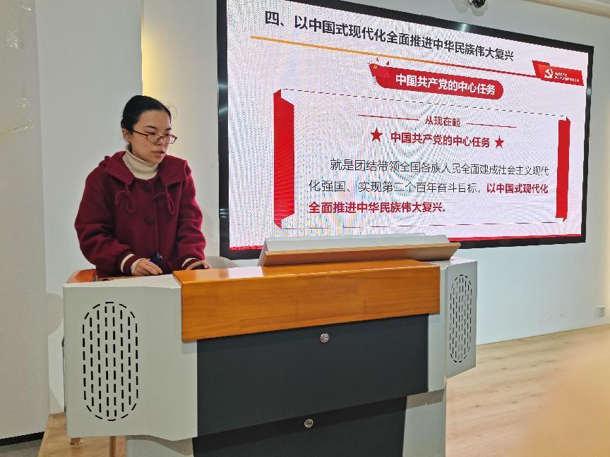 宣講會(huì)上,陳林同志以“貫徹黨的二十大——思想偉力領(lǐng)航向,擘畫(huà)復(fù)興新藍(lán)圖”為主題,緊扣黨的二十大報(bào)告,結(jié)合工作實(shí)際,從黨的二十大的重大意義、過(guò)去5年的工作和新時(shí)代10年的偉大變革、開(kāi)辟馬克思主義中國(guó)化時(shí)代化新境界、以中國(guó)式現(xiàn)代化全面推進(jìn)中華民族偉大復(fù)興、堅(jiān)定不移推進(jìn)全面從嚴(yán)治黨的部署和要求、努力推進(jìn)職業(yè)教育高質(zhì)量發(fā)展的若干思考這幾個(gè)方面,并結(jié)合圖書(shū)館在新時(shí)期的工作特點(diǎn),對(duì)黨的二十大精神進(jìn)行系統(tǒng)宣講和闡釋。闡釋新思想、解讀新部署、描繪新圖景,宣講報(bào)告會(huì),提氣鼓勁、催人奮進(jìn)。透徹深入的宣講、鮮活生動(dòng)的解讀,讓全體館員深受鼓舞。