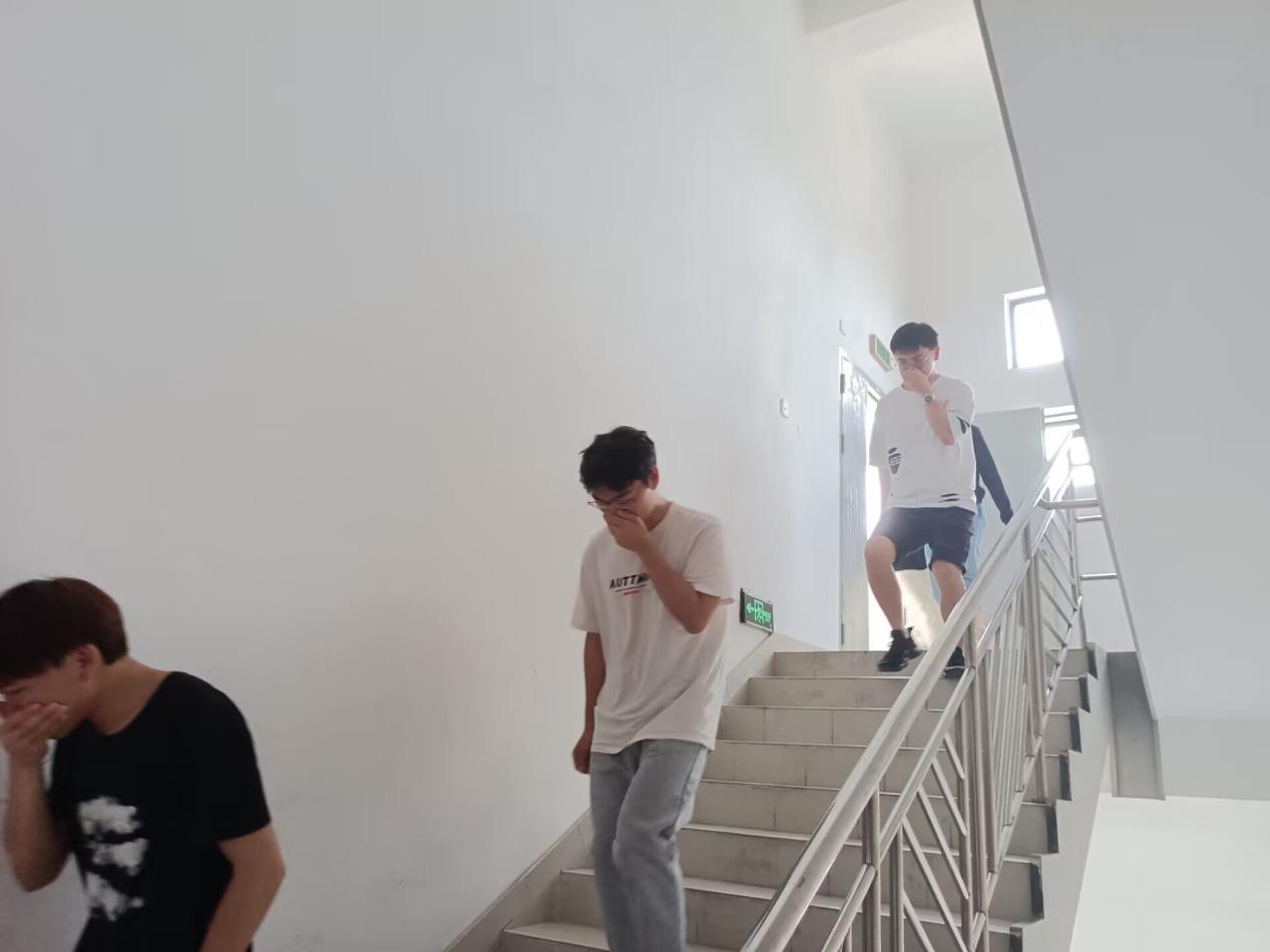 隨著圖書館內(nèi)警報聲的響起,消防演練正式拉開帷幕。本著“安全第一”的原則,各樓層的師生在圖書館館員老師和學生館員的引導下低頭彎腰,捂住口鼻,快速有序地安全撤離。