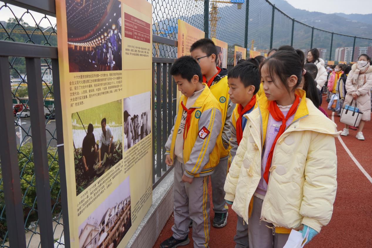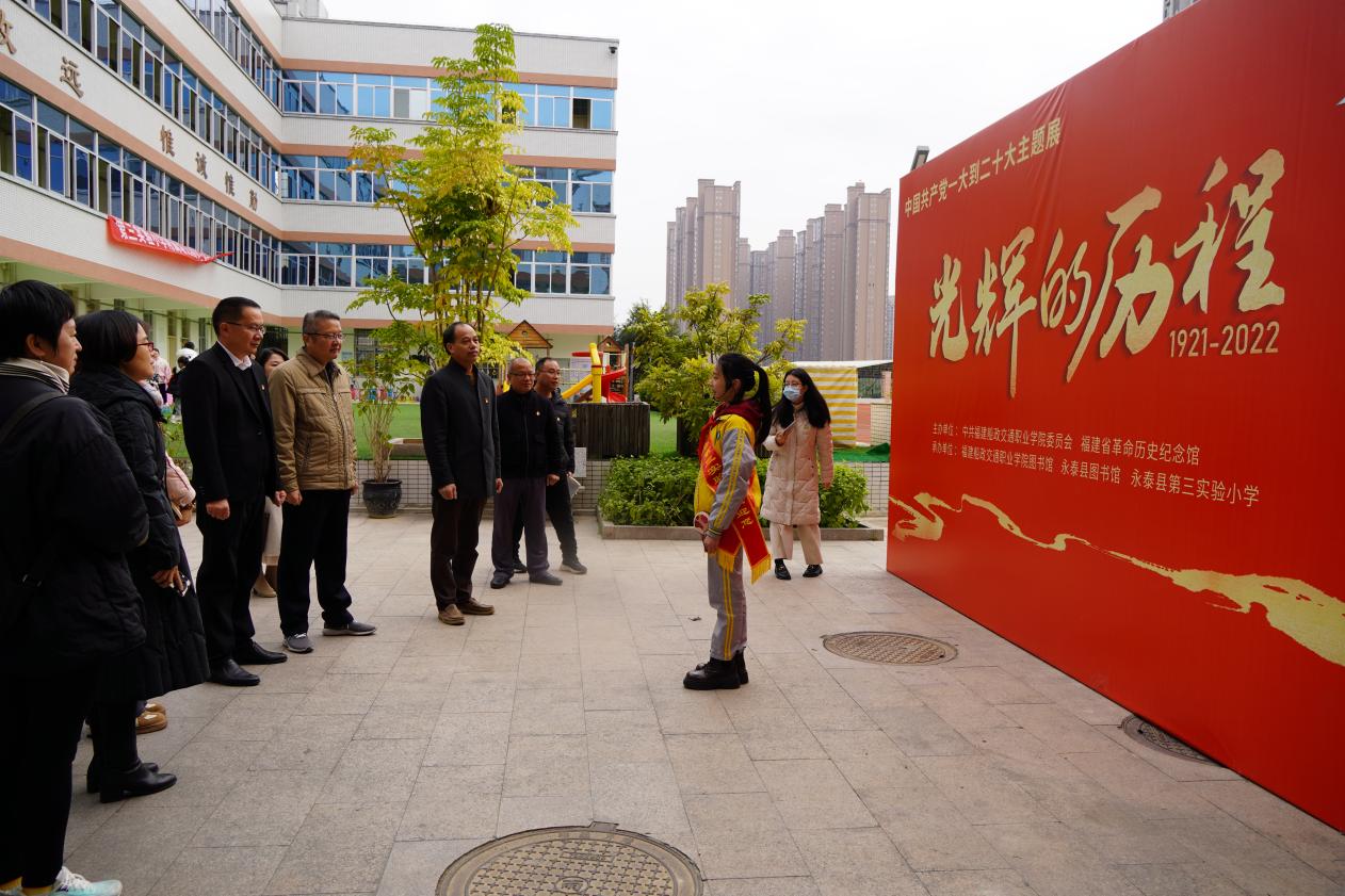 活動結(jié)束后,全體人員參觀了由我校主辦的《光輝的歷程——從一大到二十大》展覽。通過一群身著小學生校服的小小解說員,用稚嫩的童聲精彩地接力解說歷屆黨代會的開展背景、階段性歷史意義和取得的重大成就等內(nèi)容,為觀展人員獻上了一份豐盛的“中國共產(chǎn)黨歷史文化大餐”,引得眾人交口稱贊。
