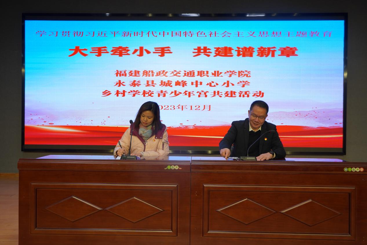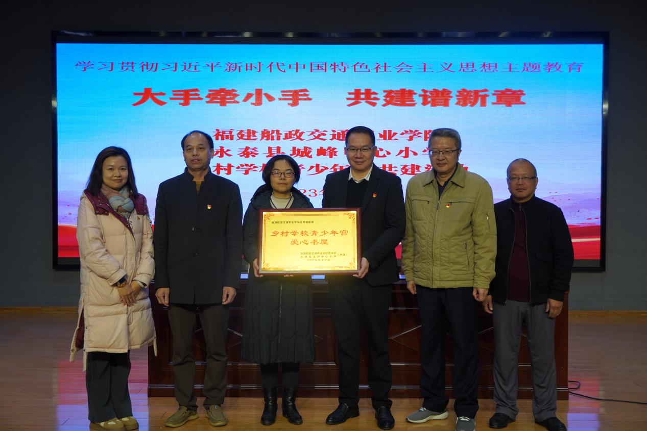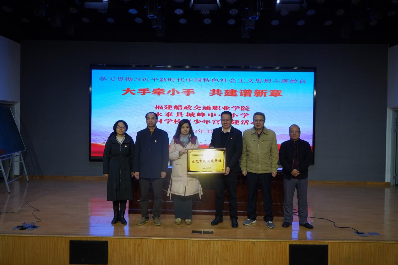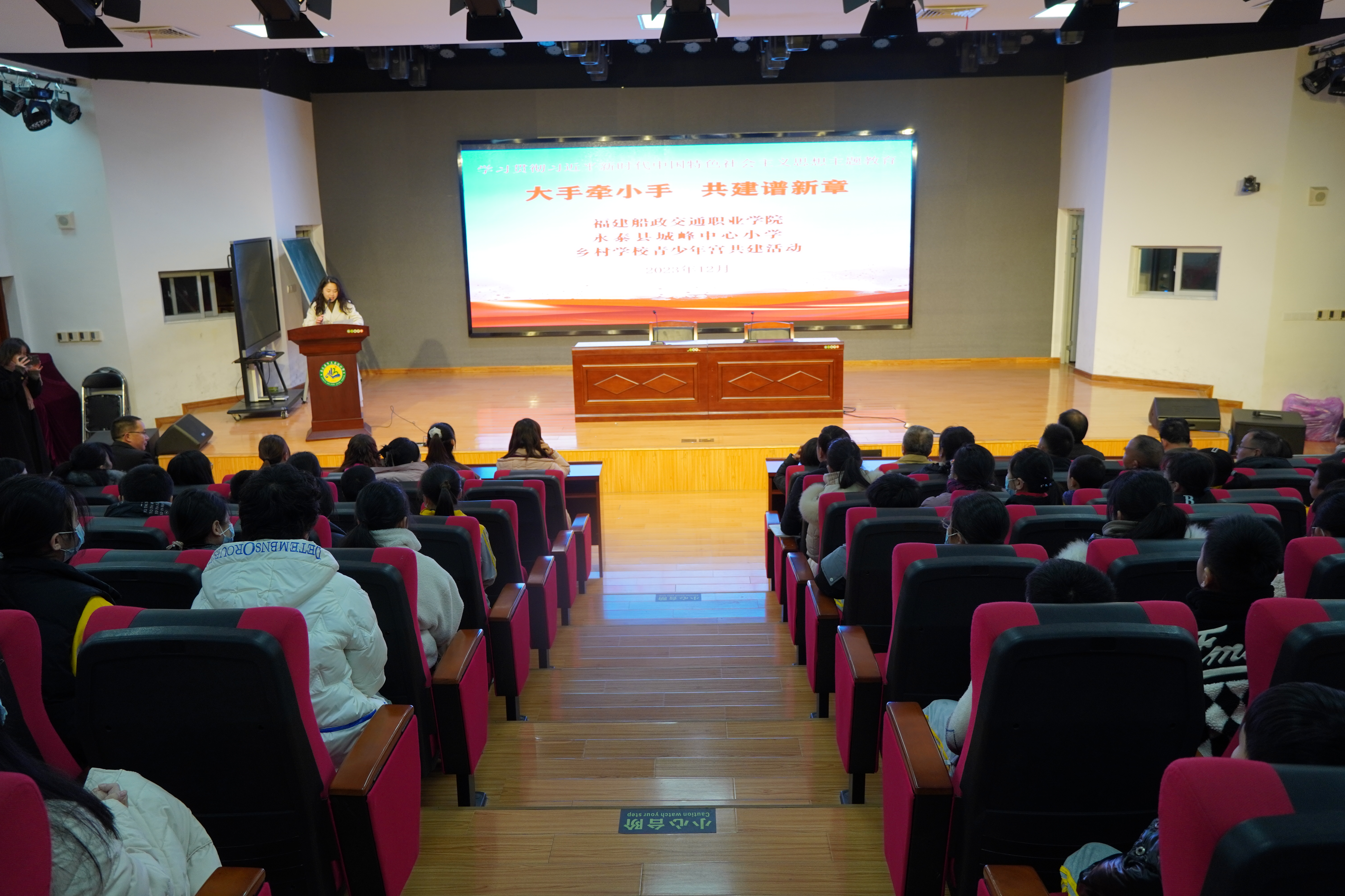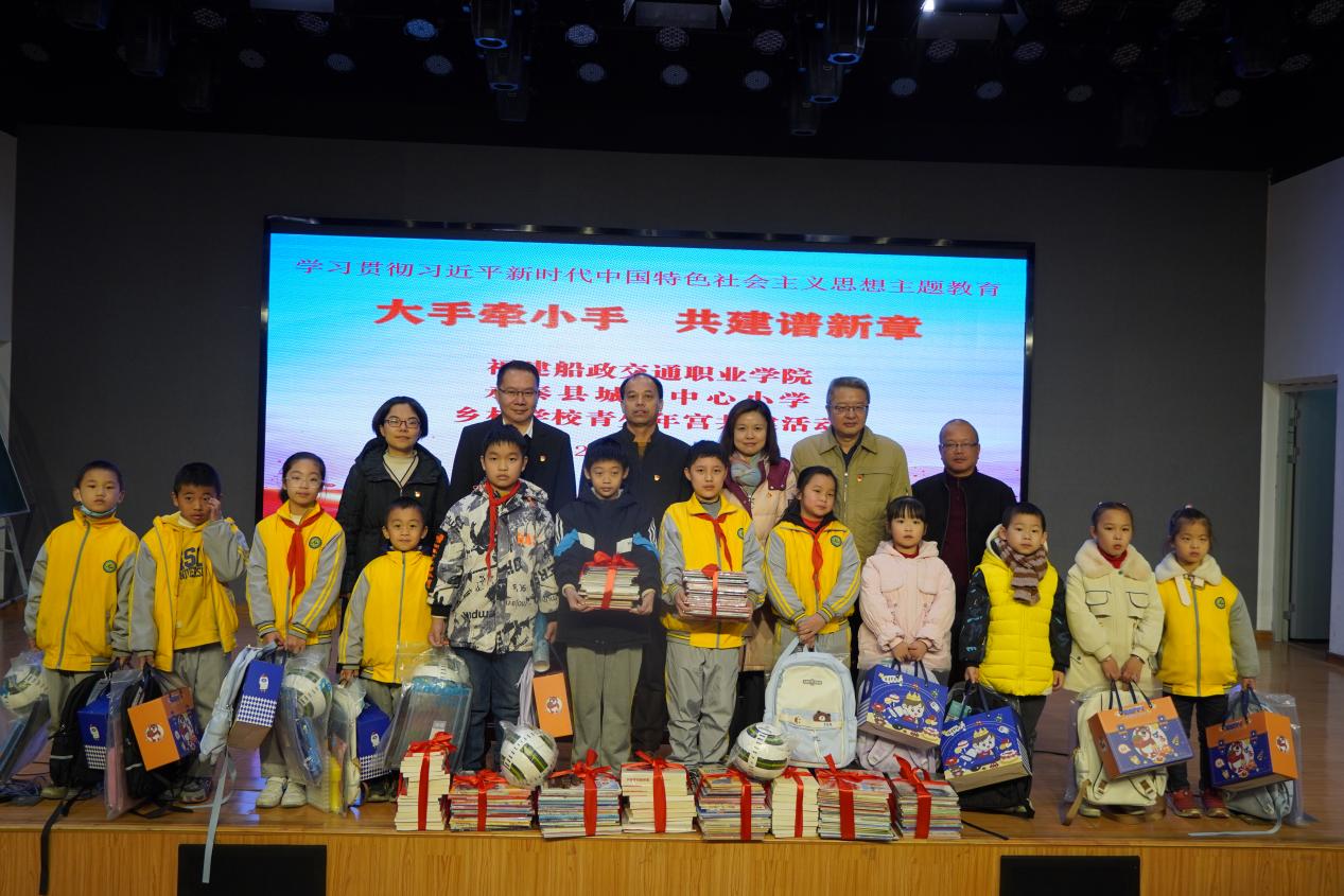 為深入貫徹《中共福建省委文明辦 中共福建省委教育工委關于組織開展鄉(xiāng)村學校少年宮共建活動的通知》精神,充分發(fā)揮全國文明校園人才資源優(yōu)勢和示范帶動作用,融合推進鄉(xiāng)村學校少年宮和文明校園建設,12月26日,福建船政交通職業(yè)學院來到“仁山智水 樂學正行”的永泰縣第三實驗小學(即永泰縣城峰中心小學),開展學習貫徹習近平新時代中國特色社會主義思想主題教育“大手牽小手 共譜建新章”福建省鄉(xiāng)村學校少年宮文化育人共建活動。福建船政交通職業(yè)學院宣傳統(tǒng)戰(zhàn)部部長林品,福建船政交通職業(yè)學院圖書館館長陳林,永泰縣教育局黨組成員、組織人事科科長雷廣森,永泰縣教育系統(tǒng)黨委辦主任、縣青少年學生校外活動中心負責人岳明燦,永泰縣圖書館館長林紅兵,永泰縣第三實驗小學書記、校長饒香挺,以及我院和永泰縣第三實驗小學師生代表參加了此次活動。