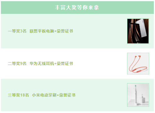 根據(jù)初賽答題總成績將選拔排名前十的組織單位入圍決賽,入圍學(xué)校中,選取成績優(yōu)異的三名學(xué)生組成校代表隊,參與最終決賽,屆時將根據(jù)答題成績進行個人與組織單位的獎項評定。