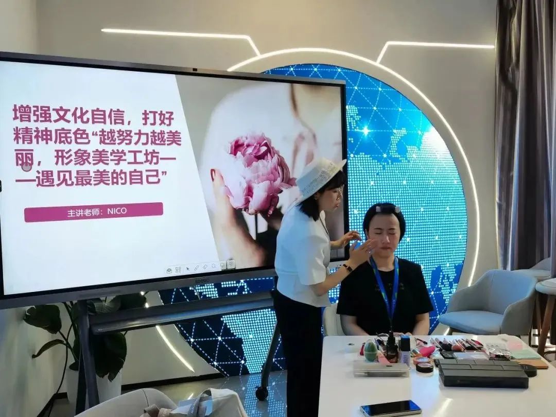 主講嘉賓國家級一級形象設(shè)計技師、國家級高級化妝師肖饒娟老師,從色彩辨識與服裝搭配運用、場合著裝、職業(yè)妝容速成等不同方面進(jìn)行了闡釋,教授大家工作生活中的美學(xué)與美感。同時,現(xiàn)場還邀請了一位老師進(jìn)行日常簡妝的細(xì)致演示,并積極鼓勵大家善于發(fā)現(xiàn)自身的美,品味我們的曼妙人生。