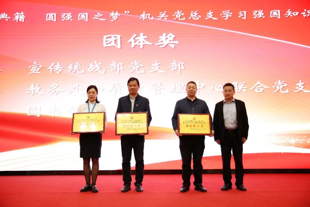 最后,還舉辦了“讀百科典籍,圓強(qiáng)國之夢(mèng)”機(jī)關(guān)黨總支學(xué)習(xí)強(qiáng)國知識(shí)競賽及學(xué)生各類獎(jiǎng)項(xiàng)的頒獎(jiǎng)。