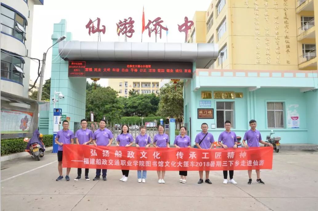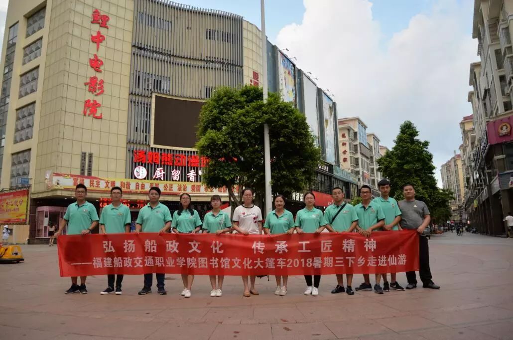 福建船政交通職業(yè)學(xué)院圖書館文化大篷車充分利用圖書館資源優(yōu)勢,以傳承船政文化為己任,弘揚船政學(xué)堂的職業(yè)教育理念,精益求精,密益求密,積極開展職業(yè)教育志愿服務(wù)活動,打造有船政文化特色的校園文化品牌,為廣大市民服務(wù),讓廣大市民知道船政、了解船政、走進(jìn)船政。 2018年7月6日-7月10日,圖書館依托 “文化大篷車”項目,組成教育關(guān)愛服務(wù)團(tuán)“三下鄉(xiāng)”服務(wù)隊,帶著我院師生的愛心,將滿滿的暖意傳遞到仙游縣市民中。
