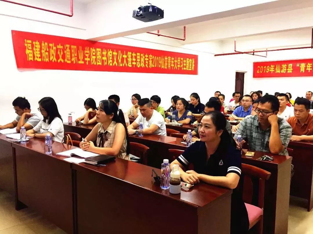 為進(jìn)一步引導(dǎo)廣大青年深入學(xué)習(xí)、宣傳、貫徹習(xí)近平新時(shí)代中國特色社會(huì)主義思想和黨的十九大精神,不忘初心、牢記使命,切實(shí)增強(qiáng)“四個(gè)意識(shí)”,堅(jiān)定“四個(gè)自信”,9月17日,仙游團(tuán)縣委在縣委黨校組織開展2019年仙游縣“青年大學(xué)習(xí)”主題宣講活動(dòng),我館文化大篷車特邀思政專家走進(jìn)此宣講活動(dòng),洪凌艷老師現(xiàn)場(chǎng)授課《平語近人》——習(xí)近平總書記用典,仙游團(tuán)縣委黨支部全體黨員領(lǐng)導(dǎo)干部及50余名鄉(xiāng)鎮(zhèn)(街道)、學(xué)校團(tuán)干部參加學(xué)習(xí)。