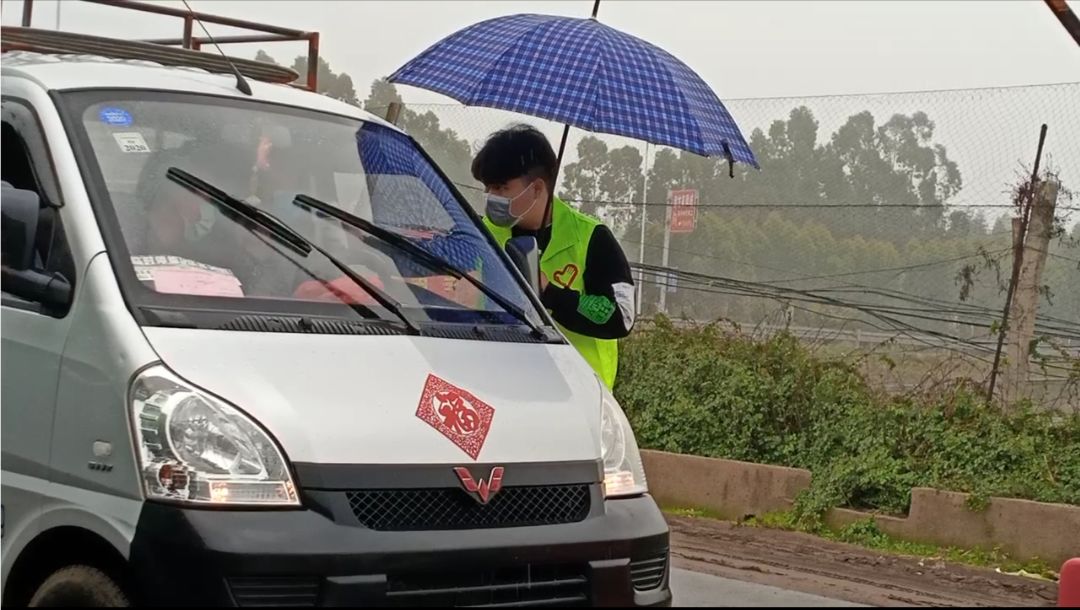 航海技術(shù)系2018級學(xué)生陳澤森同學(xué)在聽聞疫情后,第一時間報名了福州市疫情防控志愿者,接著又響應(yīng)家鄉(xiāng)縣團委號召,到鄉(xiāng)鎮(zhèn)重要出入口防疫檢測站工作,主要工作內(nèi)容是每天早上準時出發(fā)跟隨著防疫團隊到防疫檢測站對來往車輛和司機進行體溫的檢測,并進行登記,并提醒他們帶好口罩。為了讓居民能夠戴上口罩、減少集會,陳澤森可沒少“挨罵”?!捌鋵嵐ぷ鞑⒉蝗菀?,有時候挺委屈的。