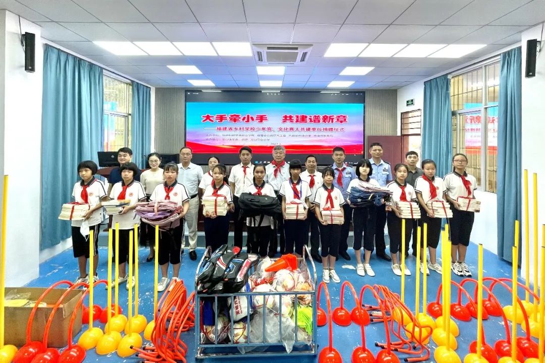 為龍山中心小學(xué)捐贈圖書和體育器材等物資。