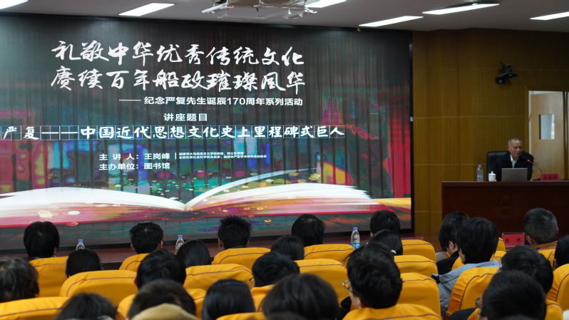 本次專題講座邀請(qǐng)福建師范大學(xué)馬克思主義學(xué)院王崗峰教授進(jìn)行分享,我校共計(jì)350余名師生參加。王崗峰教授著眼于禮敬中華優(yōu)秀傳統(tǒng)文化、賡續(xù)百年船政璀璨風(fēng)華,深度解讀習(xí)近平同志與嚴(yán)復(fù)研究、習(xí)近平同志論嚴(yán)復(fù)精神,分享了自己研究嚴(yán)復(fù)精神的歷程與思考,勉勵(lì)同學(xué)們要始終關(guān)注中華優(yōu)秀傳統(tǒng)文化,進(jìn)一步學(xué)習(xí)和發(fā)揚(yáng)嚴(yán)復(fù)的愛(ài)國(guó)主義精神、首創(chuàng)精神和學(xué)貫中西的淵博思想。
