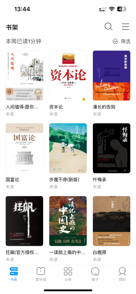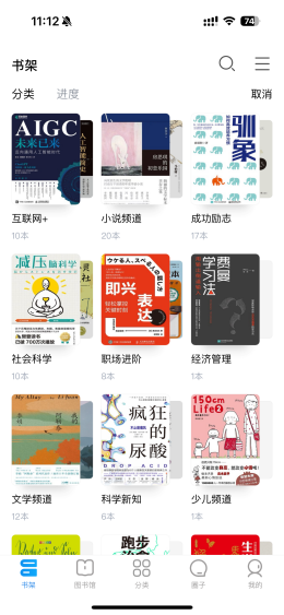 書架分類管理:書架書籍支持分類管理以及閱讀進(jìn)度自動(dòng)分類,同時(shí)也可長(zhǎng)按書籍封面并移動(dòng)可創(chuàng)建文件夾歸類。根據(jù)個(gè)人閱讀情況進(jìn)行閱讀管理,更方便定位內(nèi)容。