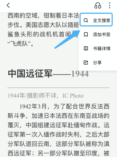 全文檢索:輕點(diǎn)屏幕喚出菜單后,右上角點(diǎn)擊【全文搜索】 -輸入關(guān)鍵詞
