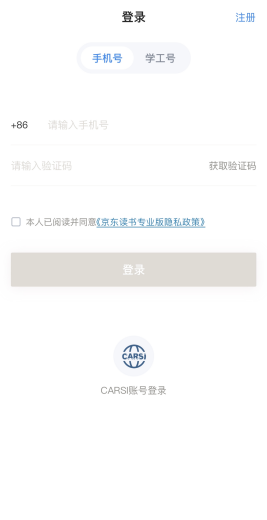首次訪問(wèn)的讀者需要連接校園網(wǎng)WiFi后,進(jìn)入京東讀書專業(yè)版平臺(tái),點(diǎn)擊【注冊(cè)】--選擇【本人所在學(xué)校】--連接【校園網(wǎng)WiFi】完成身份認(rèn)證,根據(jù)頁(yè)面提示輸入手機(jī)號(hào)、姓名等信息完成注冊(cè)。