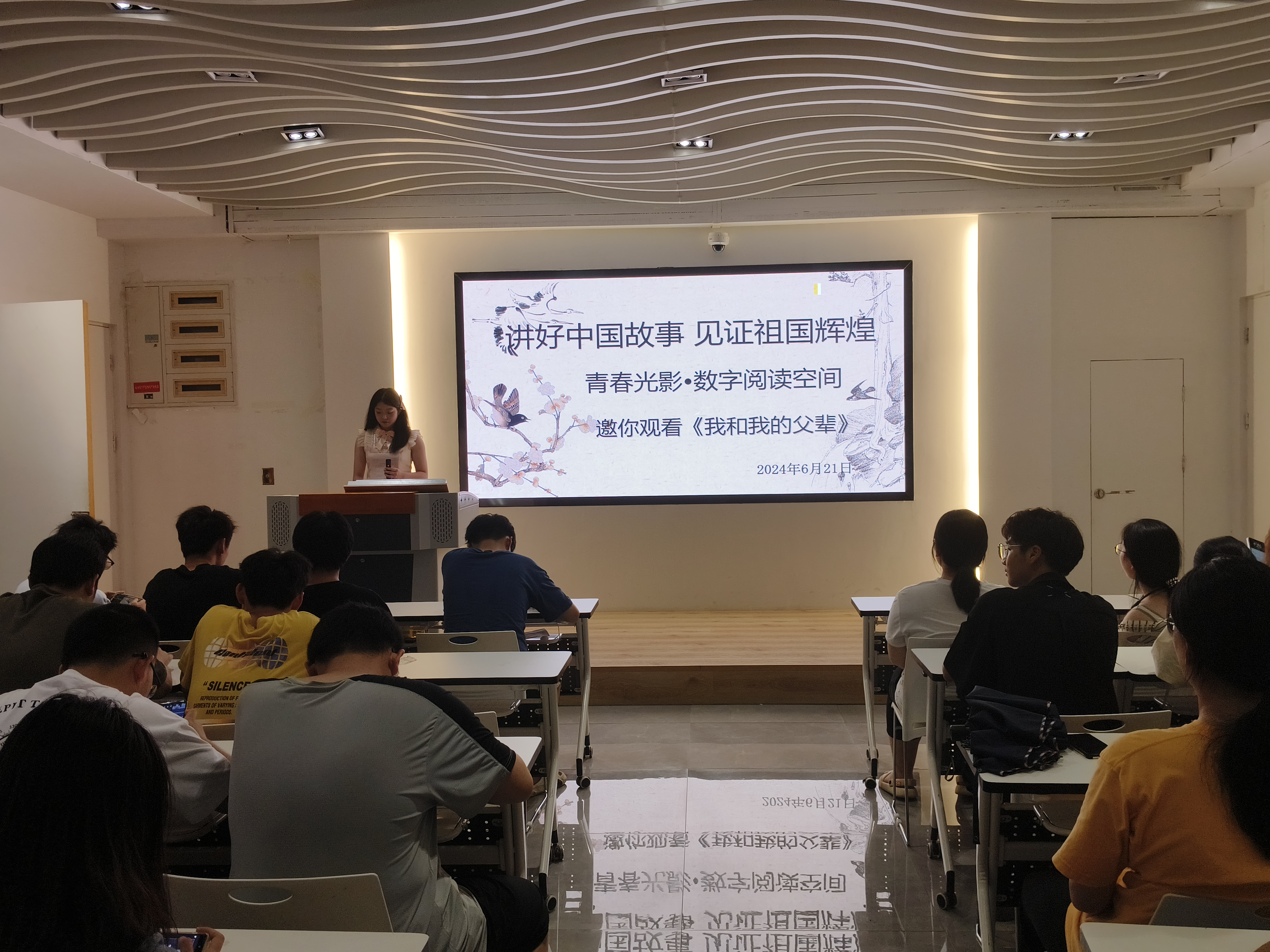 父輩們始終不忘初心,砥礪前行的奮斗歷程,以及他們傳承民族精神的堅定信念值得我們深深品悟。2024年6月21日,青春光影?數(shù)字閱讀空間開展了“薪火相傳父輩情,自強以報少年行”紅色電影《我和我的父輩》展播活動。