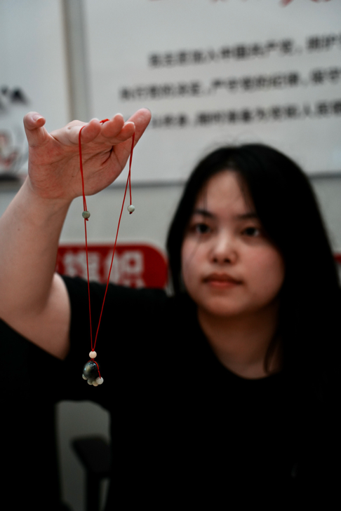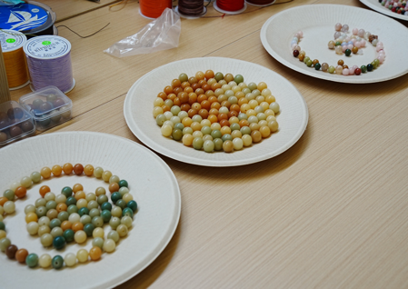 在老師的悉心指導(dǎo)下,同學(xué)們紛紛拿起手中的編繩和彩珠,躍躍欲試,期待那一根根編繩能在自己手上編出精美的作品。