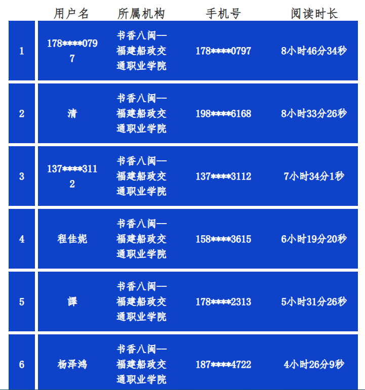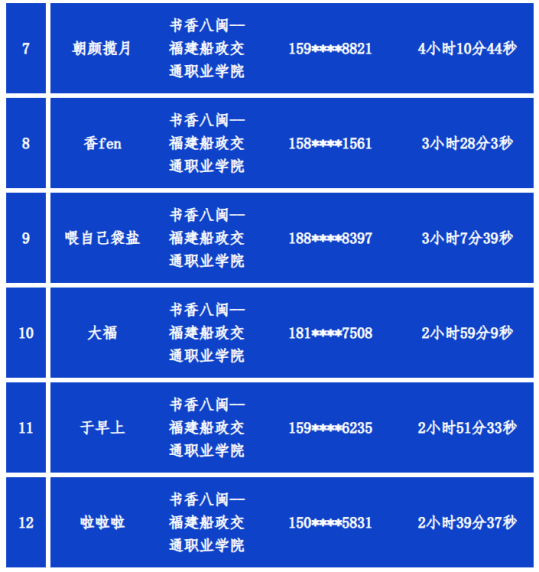 品七天閱讀活動閱讀總時長排行榜