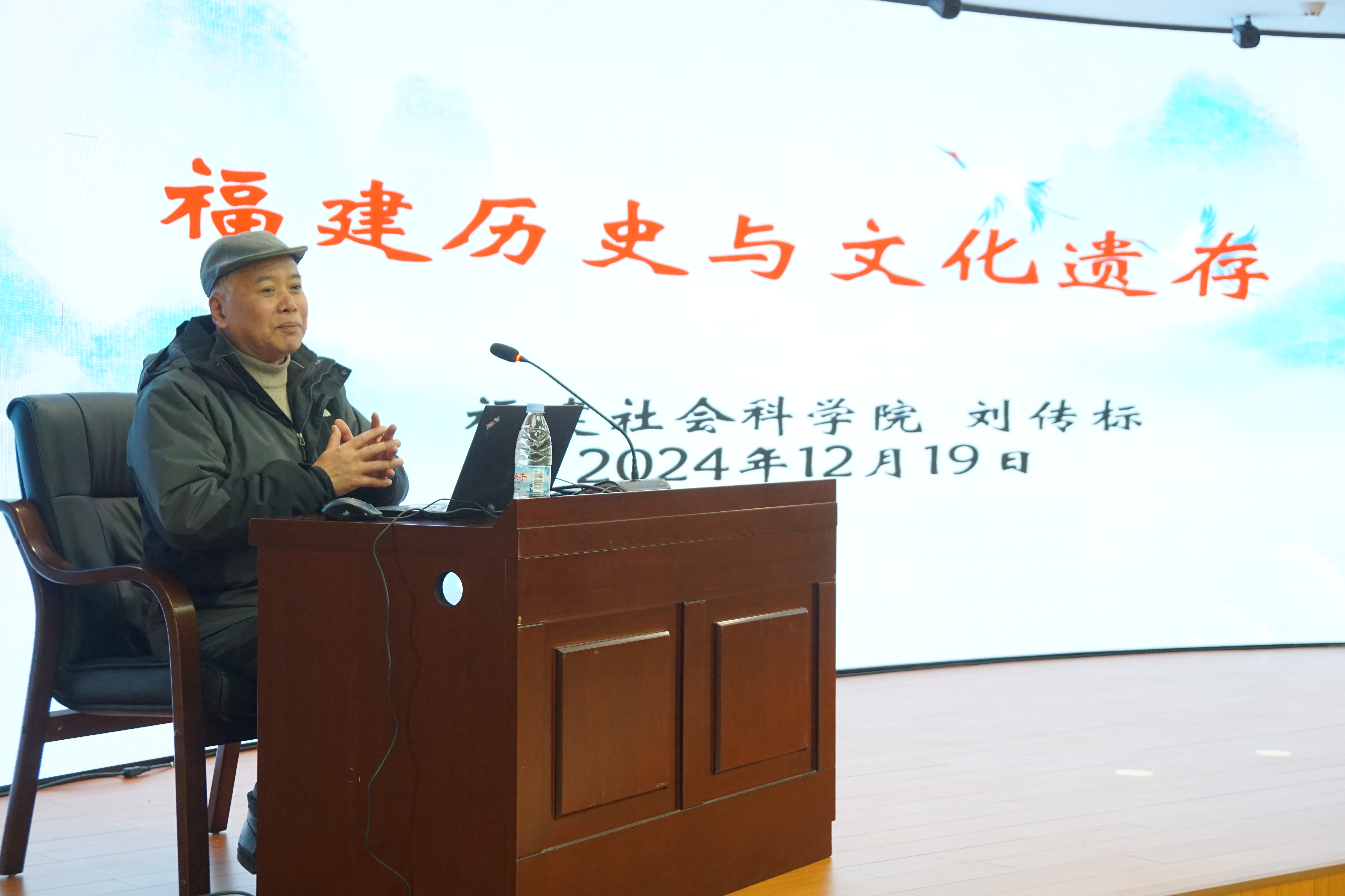 為進一步深入學(xué)習(xí)貫徹習(xí)近平文化思想,“侯官文化與改革創(chuàng)新——慶祝福建船政交通職業(yè)學(xué)院辦學(xué)158周年”第三屆侯官論壇分論壇系列活動之-講座《福建歷史與文化遺存》于2024年12月19日在藝新樓334學(xué)術(shù)報告廳舉辦,邀請了福建社科院歷史所原所長、二級研究員劉傳標作為主講嘉賓,為到場的師生帶來了一場關(guān)于福建歷史文化的盛宴。圖書館陳林館長主持本次講座。