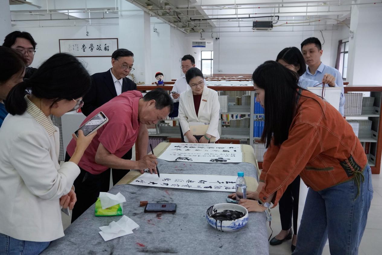本次活動還特別邀請了國家一級美術師、林則徐書畫院院長徐天春先生,及國內十位知名書畫家齊聚一堂,在圖書館舉行“紀念林則徐誕辰240周年”暨“世界讀書日”特別行動——林則徐名言佳句書法筆會。學院黨委書記陳宜大、院長陳群與各位領導、嘉賓、現場師生共同見證了這場藝術與精神的雙重盛宴。