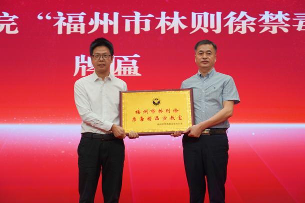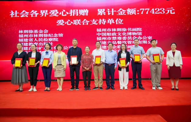 隨后,林則徐基金會副會長、沈葆楨第六代后裔沈園代表林則徐基金會將水墨長卷國畫作品惠贈學院;福州市公安局禁毒支隊二級高級警長陳孔壽代表福州市禁毒辦向學院授發(fā)“福州市林則徐禁毒精品宣教室”牌匾;全國人大原常委、福建省人大常委會原副主任、林則徐基金會榮譽會長、林則徐第六代后裔林強代表林則徐基金會授予學院“愛心圖書室”牌匾?;顒舆€為愛心聯合支持單位進行表彰。