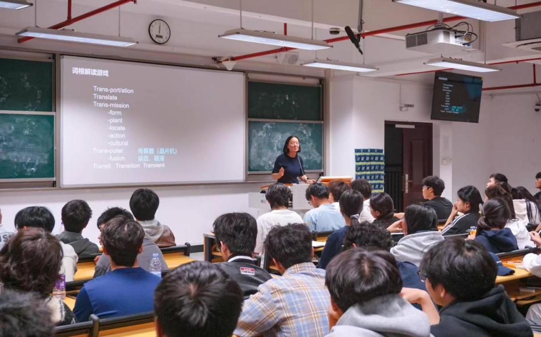 隨后,陳瑞娟老師呈現(xiàn)了一堂精彩課程。她從基礎(chǔ)語法講到詞根構(gòu)詞法,通過“Transportation”等實例,幫助學(xué)生在理解句子結(jié)構(gòu)的基礎(chǔ)上掌握詞匯記憶規(guī)律。同學(xué)們在活躍的課堂氣氛中實現(xiàn)了知識的融會貫通。