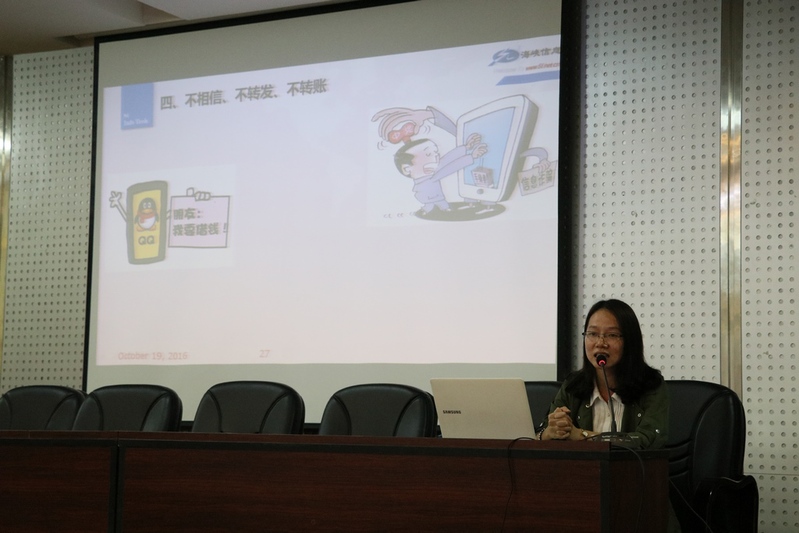我中心與省內(nèi)著名安全企業(yè)——福建省海峽信息技術(shù)有限公司合作,于2016年10月19日在學院一號樓學術(shù)報告廳開展專場信息安全意識培訓。針對目前網(wǎng)絡(luò)上普遍存在的各種問題和現(xiàn)象,加強學生網(wǎng)絡(luò)安全意識,引導學生正確辨識各種網(wǎng)絡(luò)言論,培育文明理性網(wǎng)絡(luò)行為,取得了良好的效果。