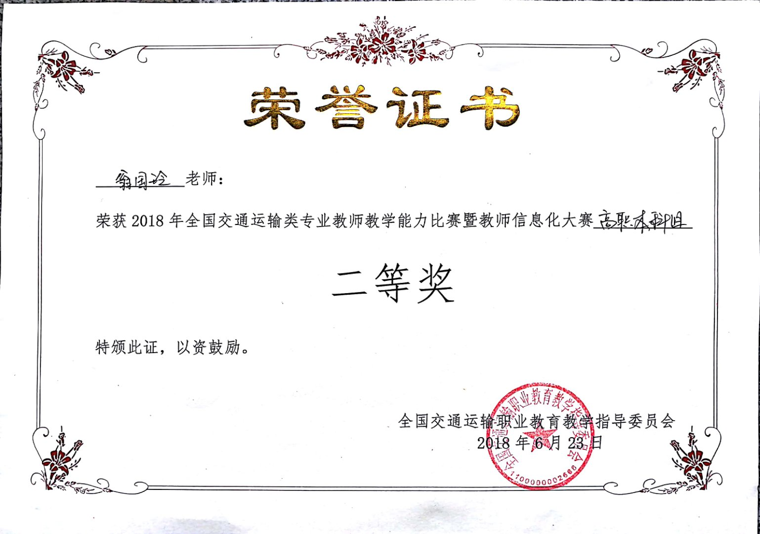 41 | 2018.06 | 2018年全國交通運輸類專業(yè)教師信息化教學能力大賽 | 國家級 | 航海氣象 | 二等獎 | 翁國玲 | ||||||||